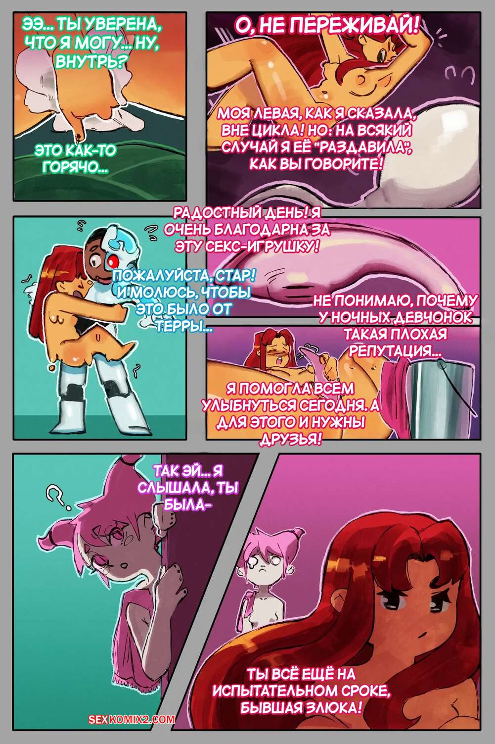 ΠΠΎΡΠ½ΠΎ ΠΊΠΎΠΌΠΈΠΊΡ Teen Titans. ΠΠΎΡΡ, ΠΏΠΎΠ»Π½Π°Ρ Π·Π²Π΅Π·Π΄. A Star Filled Night ΠΡΠ°ΡΠΎΡΠΊΠ° Π‘ΡΠ°ΡΡΠ°ΠΉΡ Π²ΠΎΠ·Π±ΡΠΆΠ΄Π΅Π½Π° ΠΈ Ρ ΠΎΡΠ΅Ρ ΡΠ΅ΠΊΡΠ°. ΠΠ½Π° ΡΠΎΠ±Π»Π°Π·Π½ΡΠ΅Ρ Π²ΡΠ΅Ρ ΠΈΠ· ΠΊΠΎΠΌΠ°Π½Π΄Ρ ΠΈ ΡΠΈΡΠ°Π½ΠΎΠ² ΠΈ Π»Π°ΡΠΊΠ°Π΅Ρ ΠΈΡ , ΠΏΠΎΡΠ»Π΅ ΡΠ΅Π³ΠΎ Π·Π°Π½ΠΈΠΌΠ°Π΅ΡΡΡ ΡΡΡΠ°ΡΡΠ½ΠΎΠΉ Π΅Π±Π»Π΅ΠΉ, ΠΏΠΎΠ»ΡΡΠ°Ρ Π½Π΅Π²Π΅ΡΠΎΡΡΠ½ΡΠΉ ΠΎΡΠ³Π°Π·ΠΌ.