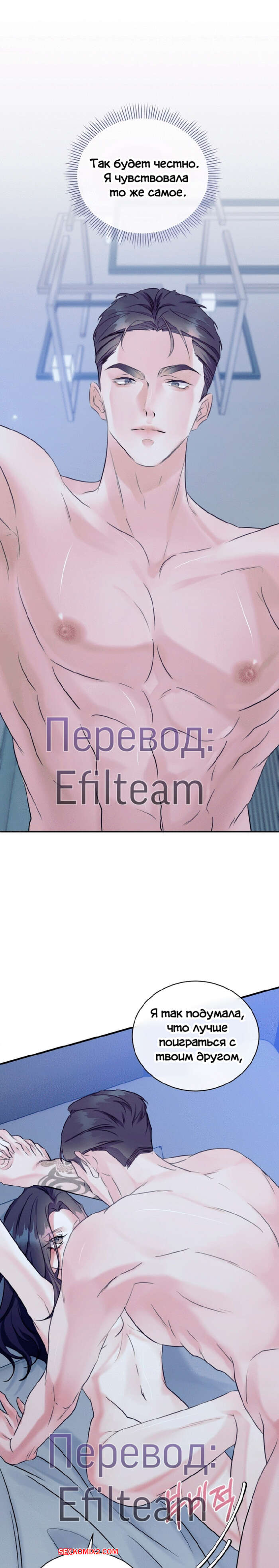 Порно комикс Мята. Часть 16 и 17 и 18. Bakha Парень обнимает девушку сзади и целуют ее шею и ласкает грудь. Красотка возбудилась и не смогла устоять перед похотью. Она легла на кровать и раздвинула ножки, чтобы принять в себя член парня.